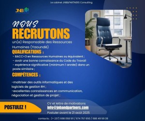 Offre d’emploi pour le poste de Responsable des Ressources Humaines